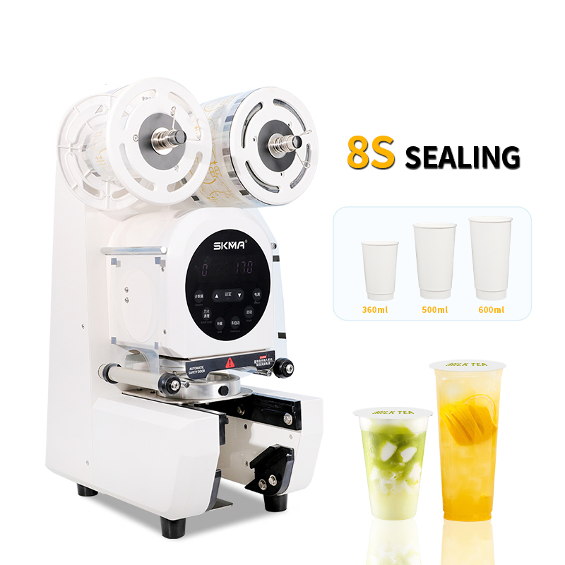 Powered by 220V, the sealer heats quickly and seals each cup in 3-5 seconds. The adjustable temperature (160-200°C) allows customization for different materials, ensuring tight seals during busy periods while increasing service capacity.