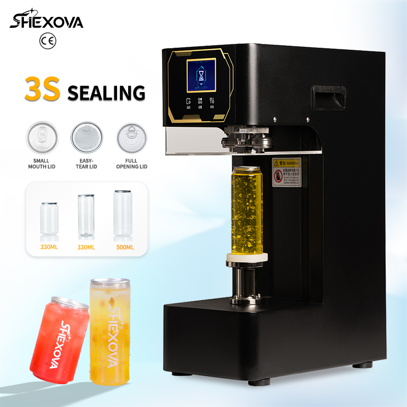This CE-certified can sealer transforms milk tea shop operations. It seals 55mm-lid cans (tin/plastic) in 2-3 seconds, handling 200-650ML sizes (330ML/500ML etc.) and small-mouth/easy-tear/full-opening lids.