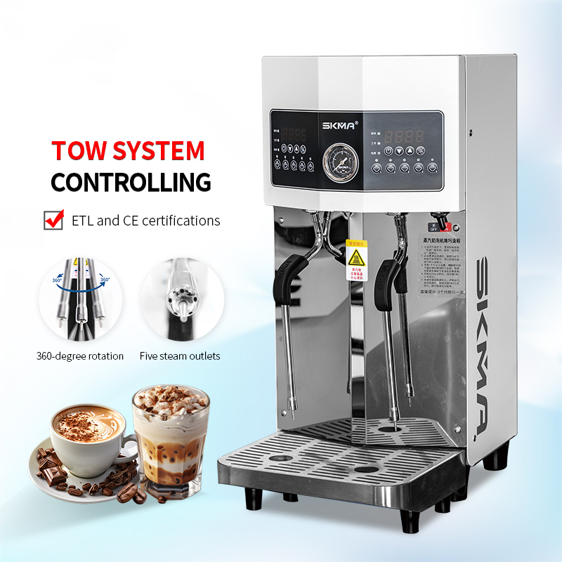 Electric Stainless Steel Steam Milk Machine Double Head Coffee Beverage Heater