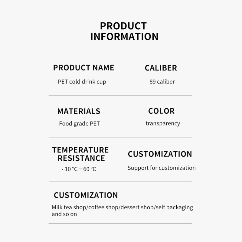 Turn our clear PET cups into a powerful branding tool with our custom logo printing service. Whether you're a local cafe, a chain coffee shop, or an event organizer, adding your logo, brand colors, or a unique slogan to the cups helps reinforce brand recognition—every time a customer carries your cup, they become a walking advertiser.