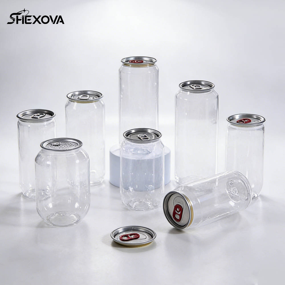 Customizable Logo Plastic Pull-Ring Clear Can For Juice Soda Tea Beer